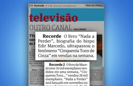 Na sexta-feira, o jornal Folha de S. Paulo (coluna Todo Canal) repercutiu a marca expressiva e destacou a liderança absoluta sobre o best-seller inglês.