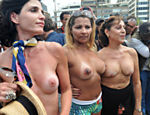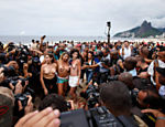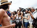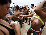 Organizado na própria rede, com mil promessas de adesão, o protesto teve apenas seis participantes sem sutiã. As participantes reivindicavam o mesmo direito que os homens têm de ir à praia sem camisa.