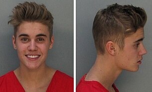 Imagem de Bieber ao ser fichado pela polícia