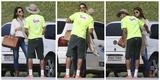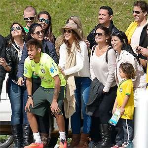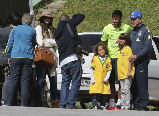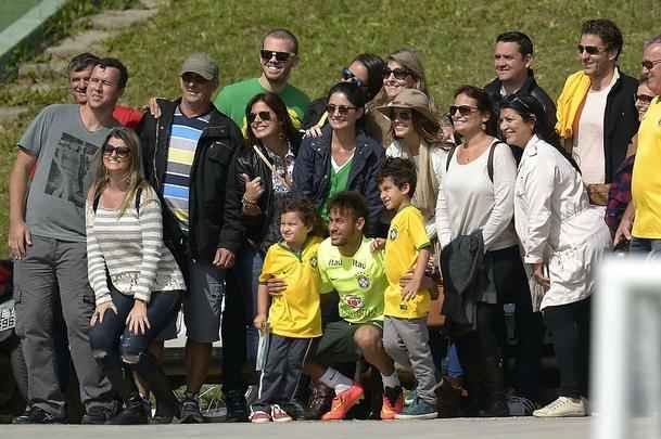 Após a atividade, Neymar se encontrou com a namorada, parentes e amigosBastante discreta, a atriz deixou o local ao fim da atividade em campo e se dirigiu à área próxima ao prédio que abriga os vestiários e a academia. Depois de distribuir autógrafos, o camisa 10 foi ao encontro da amada e de outros parentes e amigos, cumprimentando-a com um beijo na boca.