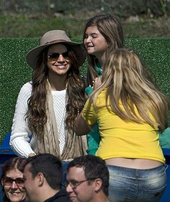 Bruna Marquezine posa para fotos com fãs em treino da Seleção Brasileira neste domingo, na Granja Comary